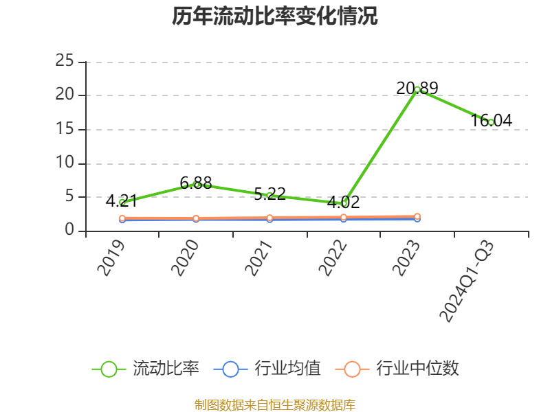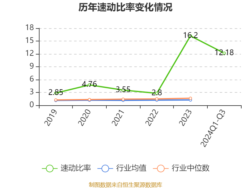 2024年前三季度,公司流动比率为16.04,速动比率为12.18。