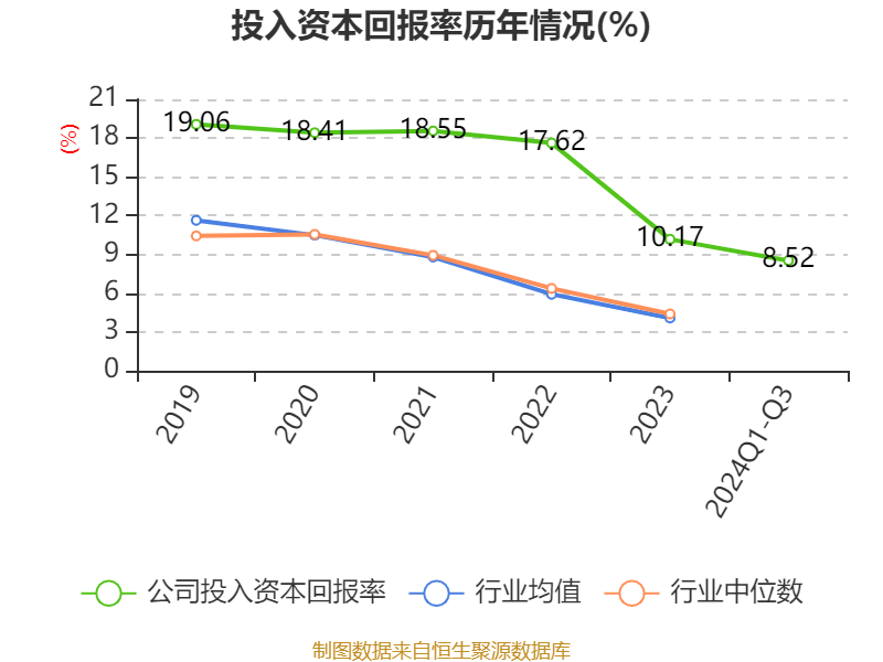 盈利能力方面, 2024年前三季度公司加权平均净资产收益率为8.47%,同比上升0.4个百分点。公司2024年前三季度投入资本回报率为8.52%,较上年同期上升1.15个百分点。