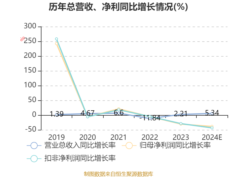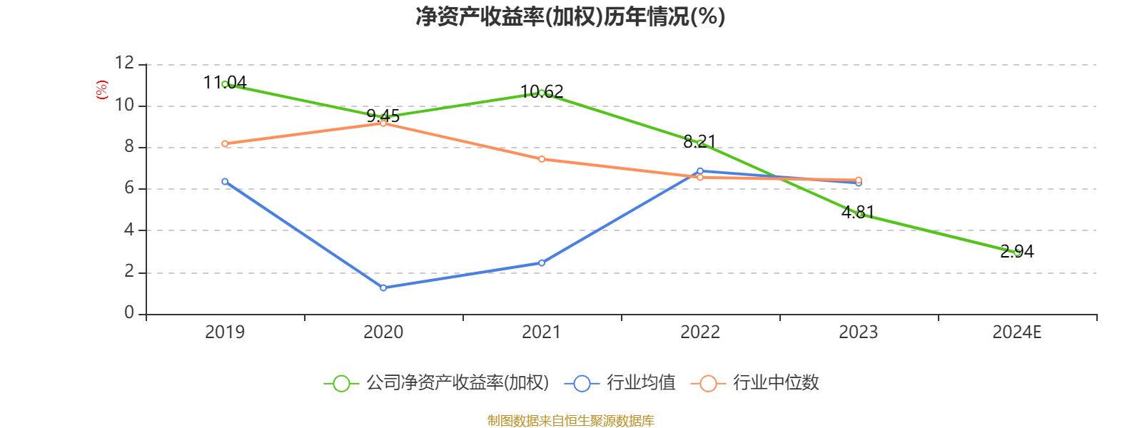 数据显示,2024年公司加权平均净资产收益率为2.94%,较上年同期下降1.87个百分点。