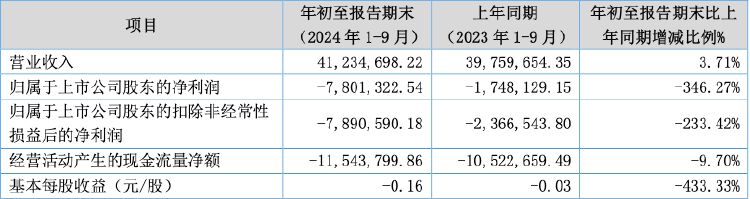 殷图网联2024年第三季度报告显示,前三季度公司实现营业收入4123.47万元,同比增长3.71%;归母净利润亏损780.13万元,同比下降346.27%,上年同期亏损174.81万元;扣非净利润亏损789.06万元,上年同期亏损236.65万元。