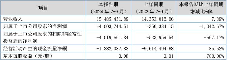 其中,第三季度营业收入为1548.54万元,同比增长7.89%,归母净利润亏损400.37万元,同比下降1042.67%,公司净利润持续大幅下滑。