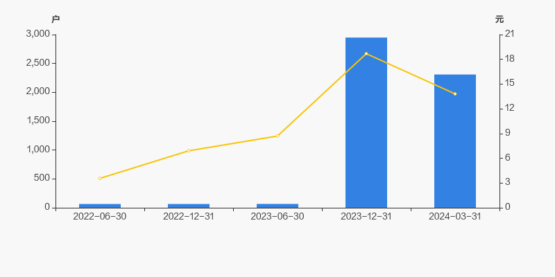 2022年6月30日至今,公司股东户数成倍增长,区间涨幅达3452.31%。2022年6月30日至2024年3月31日区间股价上涨288.31%。