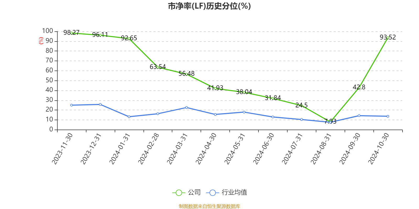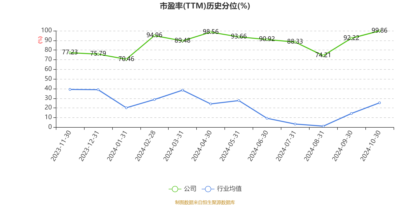 市盈率、市净率为负时,不显示当期分位数,会导致折线图中断。