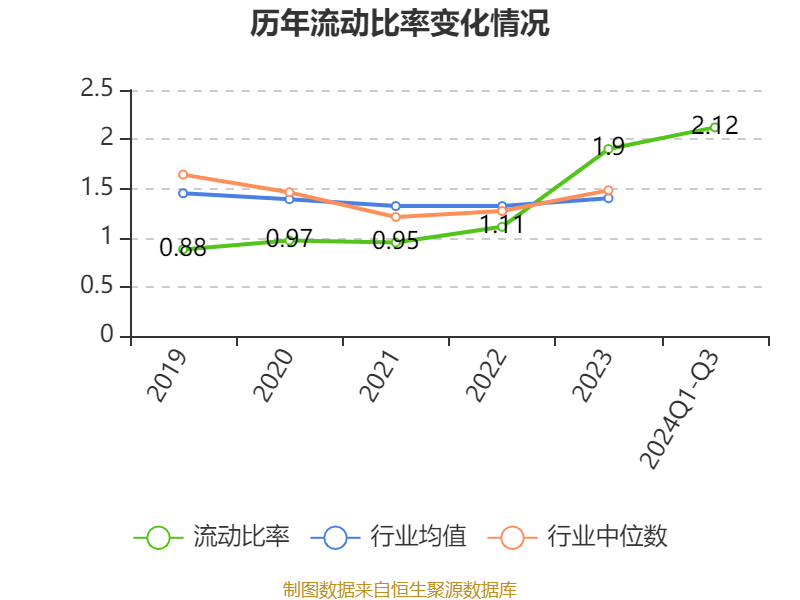 2024年前三季度,公司流动比率为2.12,速动比率为1.38。