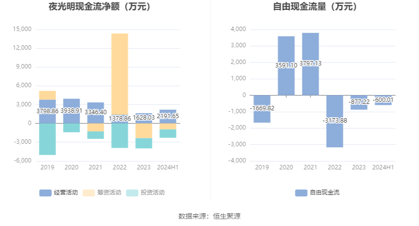 进一步统计发现,2024年上半年公司自由现金流为-600.01万元,上年同期为-2304.48万元。