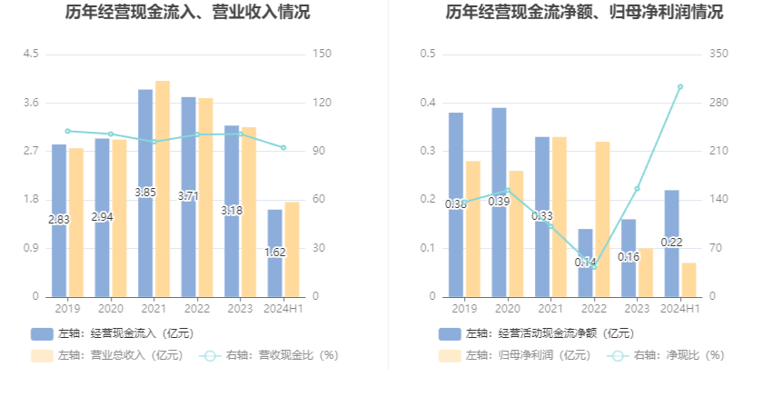 2024年上半年,公司营业收入现金比为92.35%,净现比为303.53%。