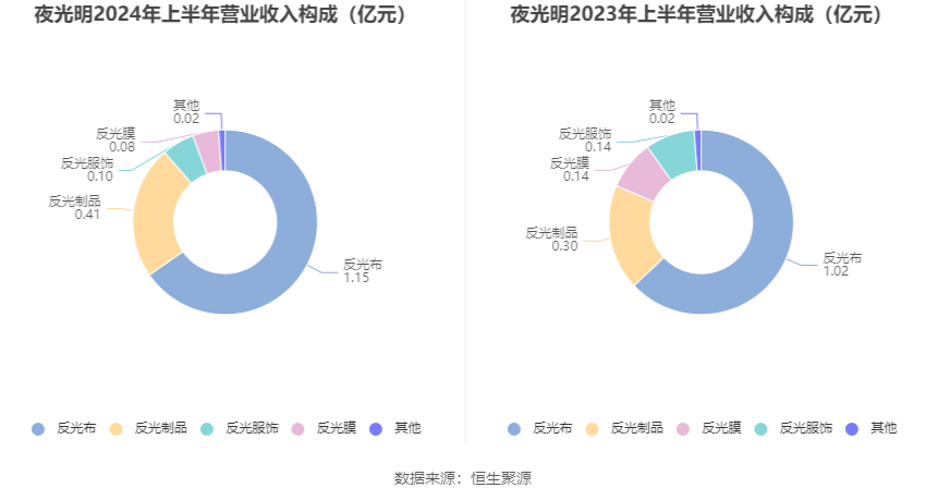 分产品看,反光布、反光制品、反光服饰2024年上半年毛利率分别为13.13%、41.24%、-2.71%。