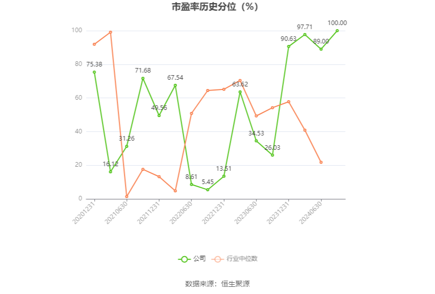 市盈率为负时,不显示当期分位数,会导致折线图中断。