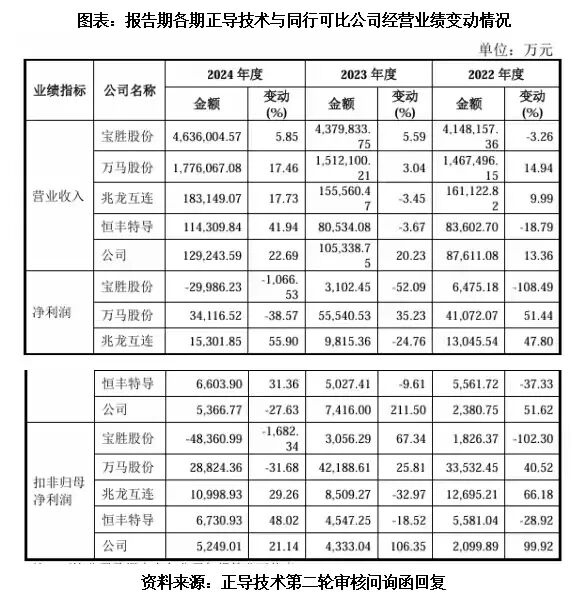 在第二轮审核问询函回复中,正导技术表示,与部分同行业可比公司经营业绩变动趋势存在差异,主要系公司与相关可比公司在业务规模、产品结构及战略聚焦领域存在一定差异所致,符合其各自经营情况。