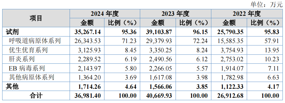 在产品结构方面,公司优生优育系列、肝炎系列试剂产品收入在报告期内持续下滑。监管要求公司说明2024年常规业务收入走势与可比公司背离的原因及合理性,阐释优生优育及肝炎系列试剂收入下降的具体原因,并说明导致收入下滑的因素是否已消除。