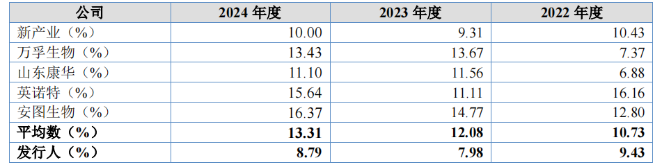 与业绩下滑形成鲜明对比的是,贝尔生物的毛利率却在持续攀升。2022年至2024年,公司常规业务毛利率分别为75.51%、77.59%、78.60%,综合毛利率亦由71.24%升至78.88%,显著高于同行可比公司同期均值(59.70%、68.39%、69.69%),个别年份甚至超过10个百分点以上。