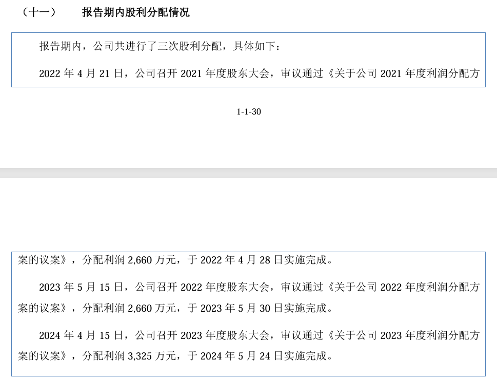 招股书数据显示,固力发在报告期内的现金分红力度较大。2022年与2023年,公司分别分派现金2660万元;2024年,这一数额提升至3325万元。尤为关键的是,2025年4月29日——距离其递交北交所IPO申报材料仅月余——公司仍决定再次现金分红3325万元。这意味着,在冲刺上市前的四年间,固力发已累计向股东分派现金1.2亿元。