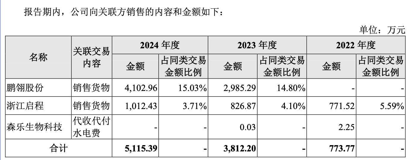 在上市前12个月,公司新增3名机构股东:嘉兴颀景(6.93%)、重庆长信(6.00%)、合肥巢甬(0.75%)。而鹏翎股份(300375)作为嘉兴颀景的有限合伙人,直接持有嘉兴颀景95.34%的份额,也因此间接持有公司6.61%股份,构成公司关联方:2023年到2024年,公司向鹏翎股份销售金额分别为2985万元和4103万元。监管问询围绕“申报前突击入股是否涉及利益输送、关联交易定价是否公允”等展开,公司在回复中强调交易系按市场化原则执行、协议中不存在特别利益安排。