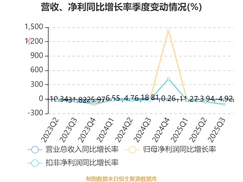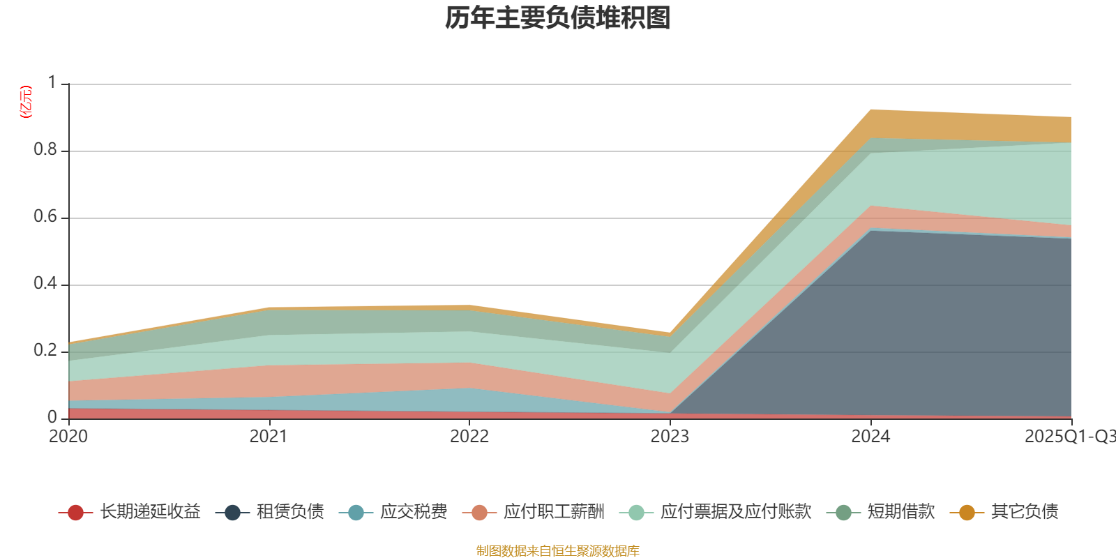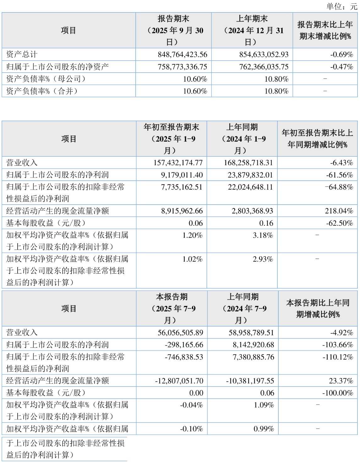 负债重大变化方面,截至2025年三季度末,公司应付票据及应付账款较上年末增加58.81%,占公司总资产比重上升1.09个百分点;短期借款较上年末减少100%,占公司总资产比重下降0.54个百分点;应付职工薪酬较上年末减少44.74%,占公司总资产比重下降0.34个百分点;交易性金融负债合计较上年末减少100%,占公司总资产比重下降0.3个百分点。