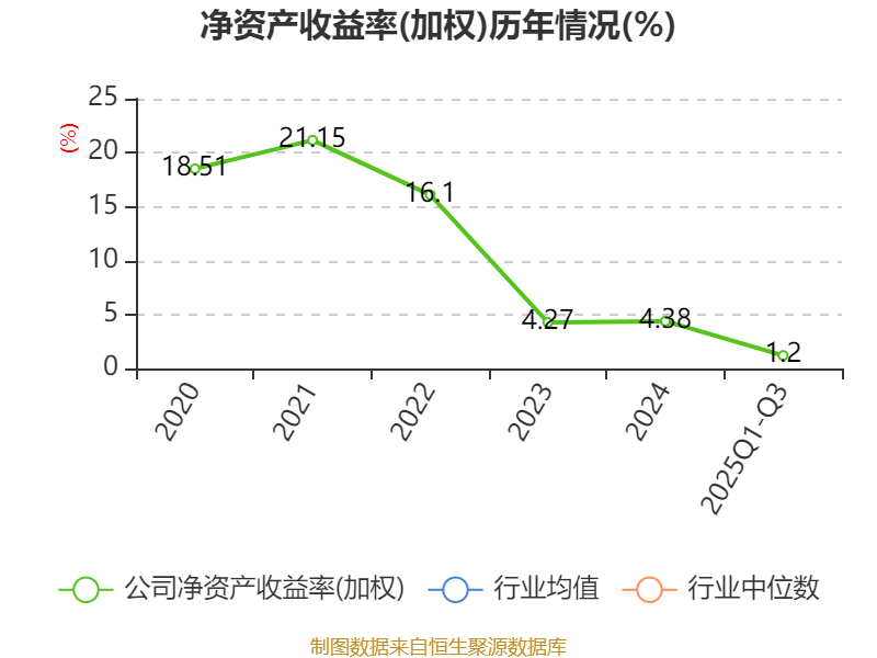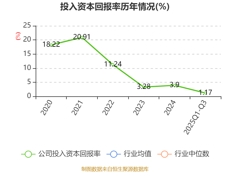 盈利能力方面, 2025年前三季度公司加权平均净资产收益率为1.2%,同比下降1.98个百分点。公司2025年前三季度投入资本回报率为1.17%,较上年同期下降1.61个百分点。