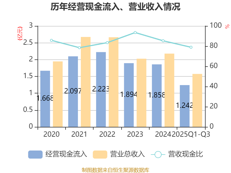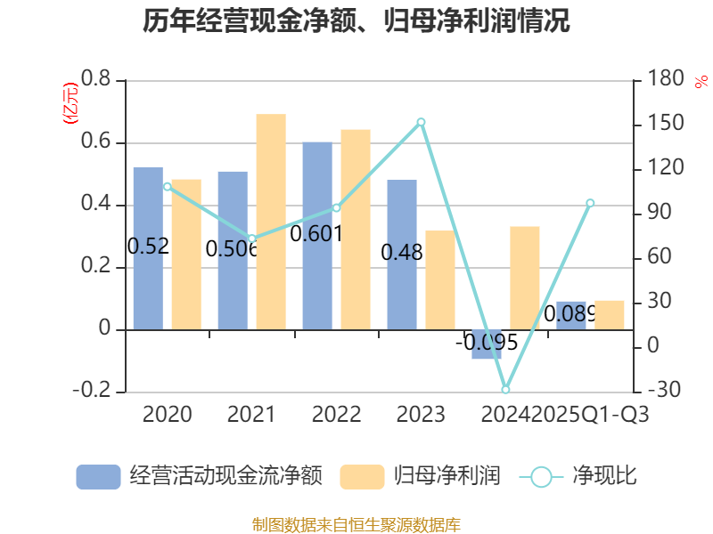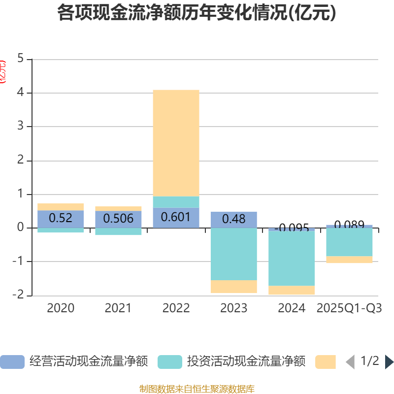 2025年前三季度,公司经营活动现金流净额为891.6万元,同比增长218.04%;筹资活动现金流净额-1992.31万元,同比减少348.04万元;投资活动现金流净额-8402.98万元,上年同期为-6556.15万元。