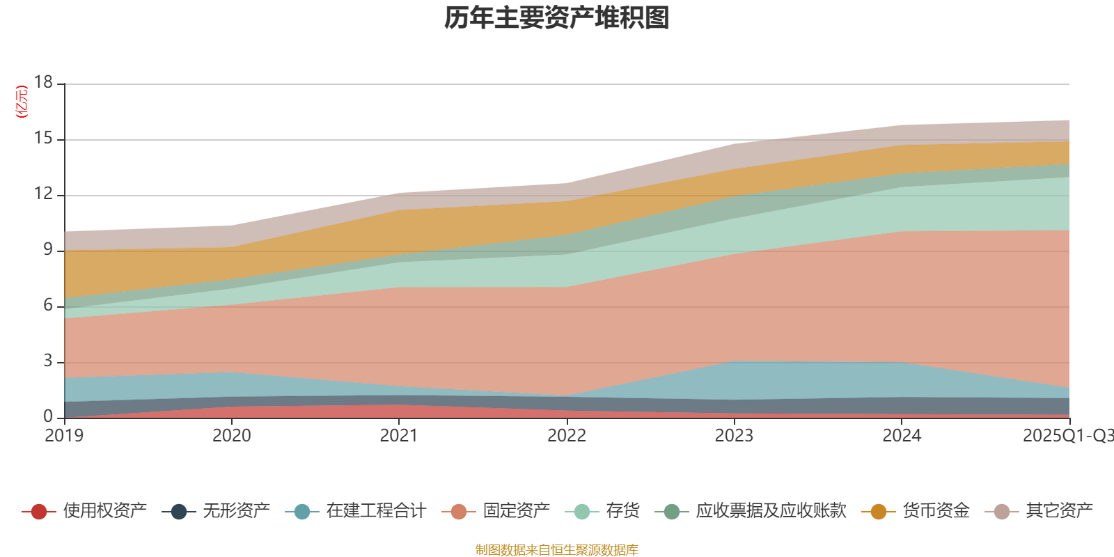 资产重大变化方面,截至2025年三季度末,公司在建工程合计较上年末减少70.2%,占公司总资产比重下降8.41个百分点;固定资产较上年末增加20.17%,占公司总资产比重上升8.17个百分点;存货较上年末增加20.44%,占公司总资产比重上升2.79个百分点;货币资金较上年末减少20.42%,占公司总资产比重下降2.11个百分点。