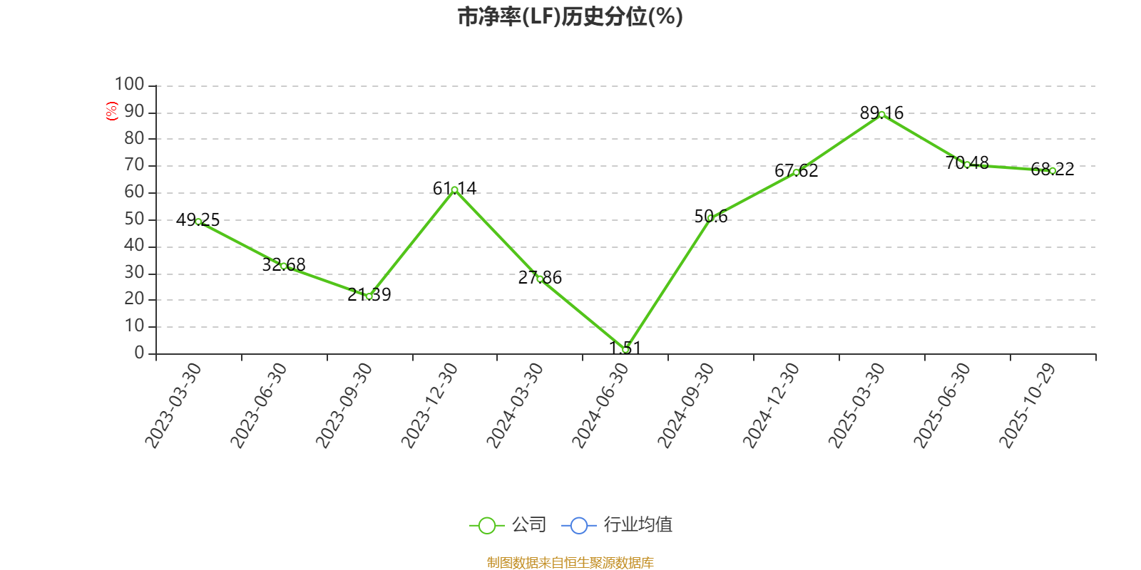 市盈率、市净率为负时,不显示当期分位数,会导致折线图中断。