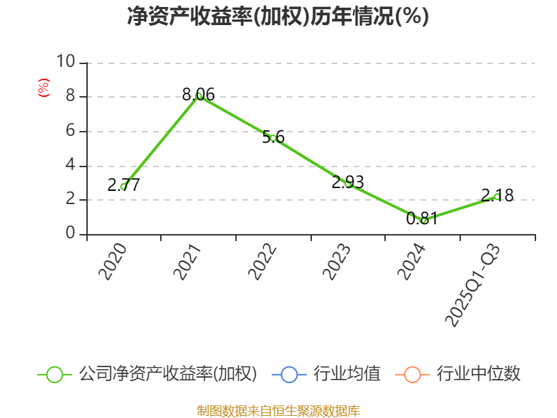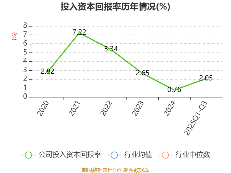 盈利能力方面, 2025年前三季度公司加权平均净资产收益率为2.18%,同比下降0.41个百分点。公司2025年前三季度投入资本回报率为2.05%,较上年同期下降0.22个百分点。