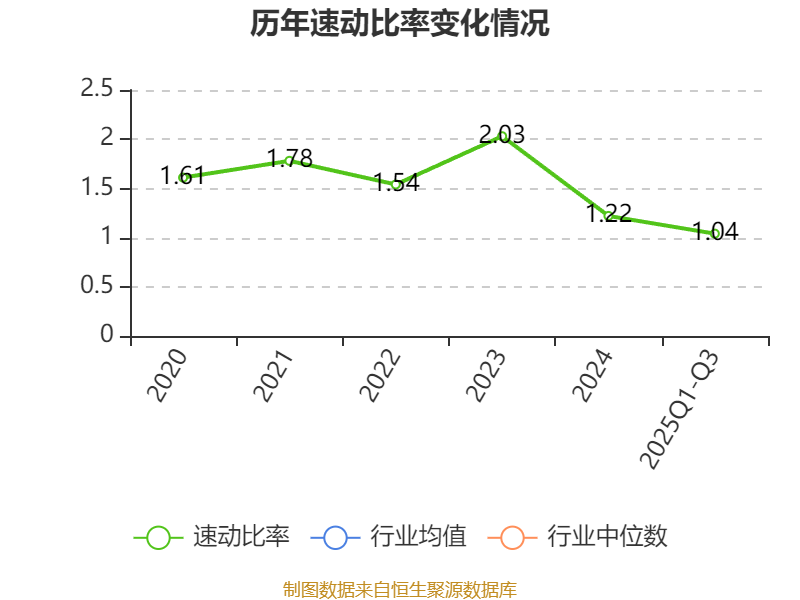 2025年前三季度,公司流动比率为2.38,速动比率为1.04。