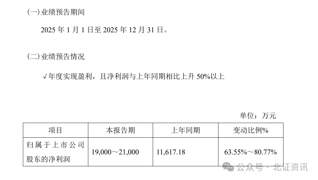 日前,广信科技发布2025年度业绩预告,公司全年业绩迎来大幅增长,预计实现归属于上市公司股东的净利润1.9亿元至2.1亿元,同比增长63.55%至80.77%。