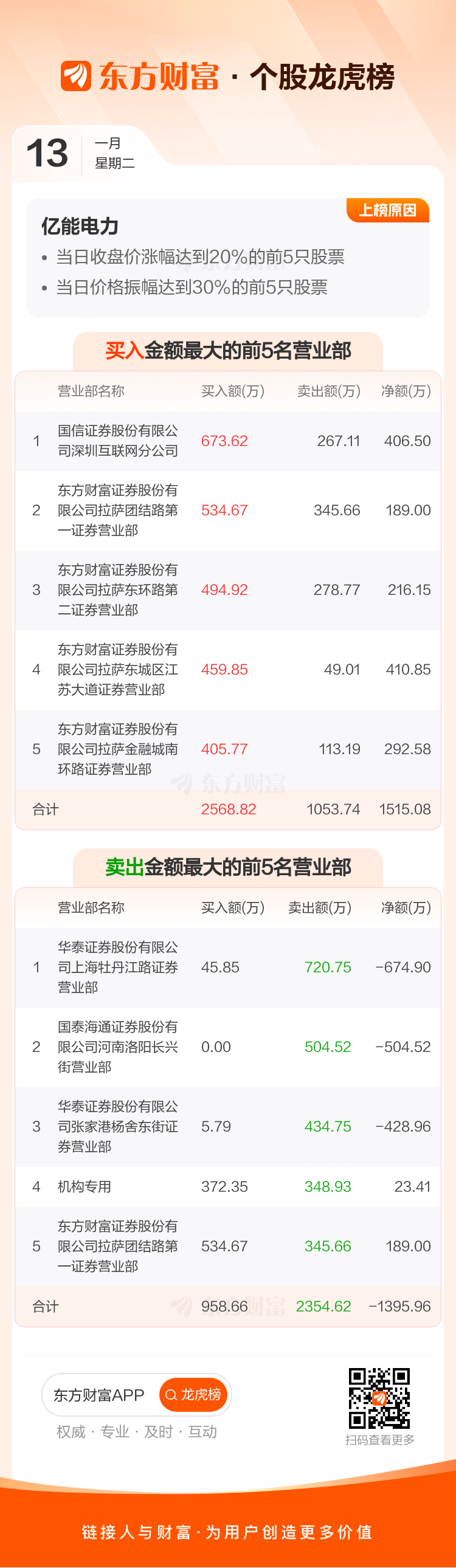 亿能电力(920046)龙虎榜数据(01-13)