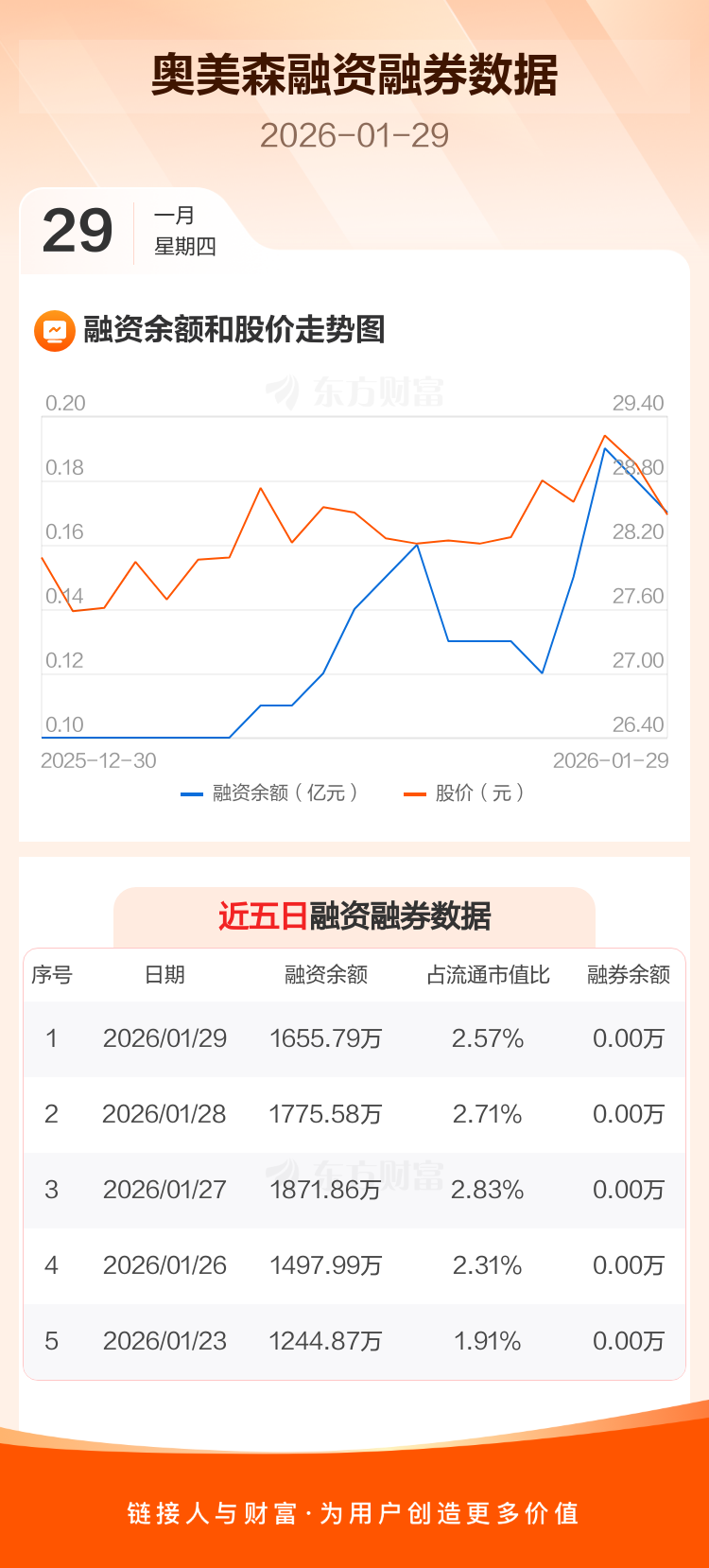 交易所最新数据显示,奥美森于2026年1月29日获融资买入127.42万元,融资偿还247.22万元,当日融资净偿还119.79万元。目前,该股融资余额1655.79万,占流通市值比例为2.57%。