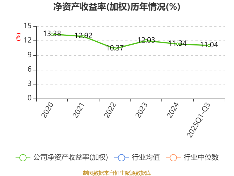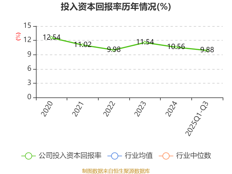盈利能力方面, 2025年前三季度公司加权平均净资产收益率为11.04%,同比上升2.4个百分点。公司2025年前三季度投入资本回报率为9.88%,较上年同期上升1.71个百分点。