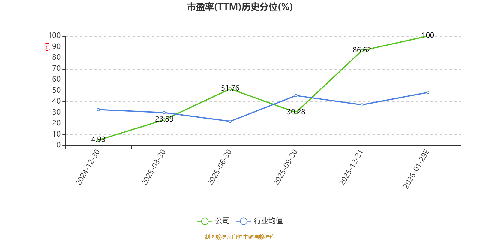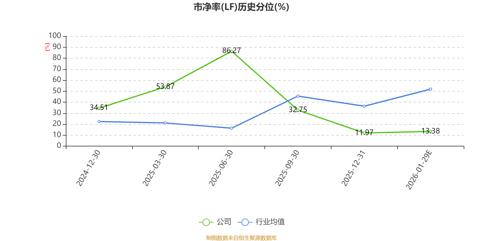 市盈率、市净率为负时,不显示当期分位数,会导致折线图中断。
