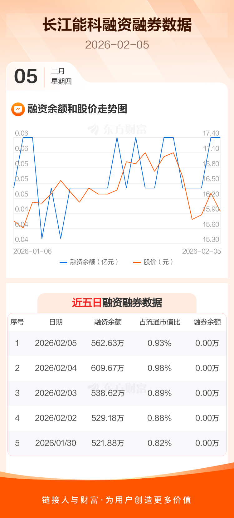 交易所最新数据显示,长江能科于2026年2月5日获融资买入40.56万元,融资偿还87.60万元,当日融资净偿还47.04万元。目前,该股融资余额562.63万,占流通市值比例为0.93%。