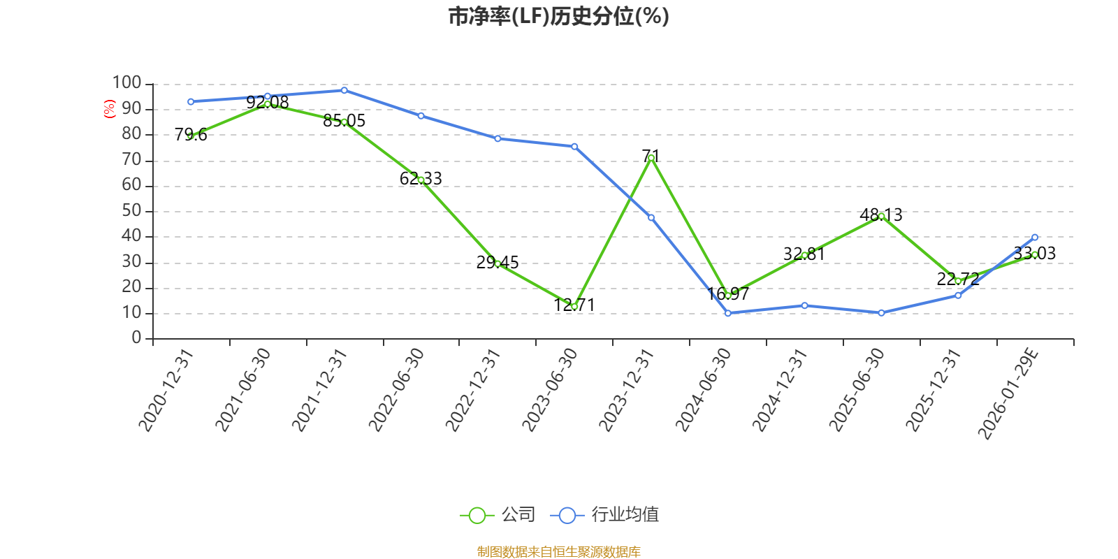 市盈率、市净率为负时,不显示当期分位数,会导致折线图中断。