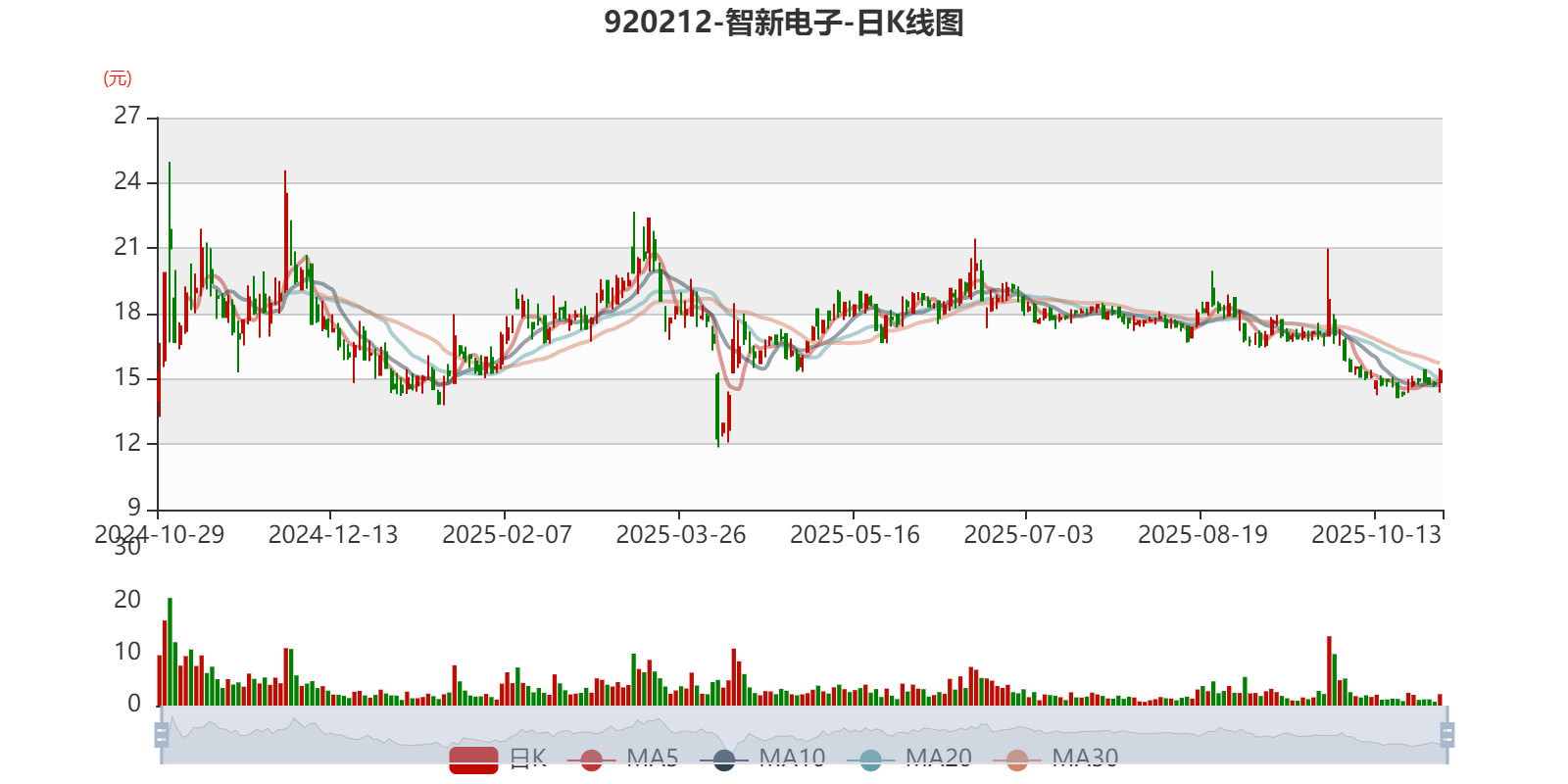 中证智能财讯智新电子(920212)10月29日披露2025年第三季度报告。前三季度公司实现营业总收入3.46亿元,同比下降9.45%;归母净利润723.92万元,同比下降49.52%;扣非净利润亏损213.28万元,上年同期盈利1411.45万元;经营活动产生的现金流量净额为2252.01万元,上年同期为-3164.8万元;报告期内,智新电子基本每股收益为0.07元,加权平均净资产收益率为1.73%。