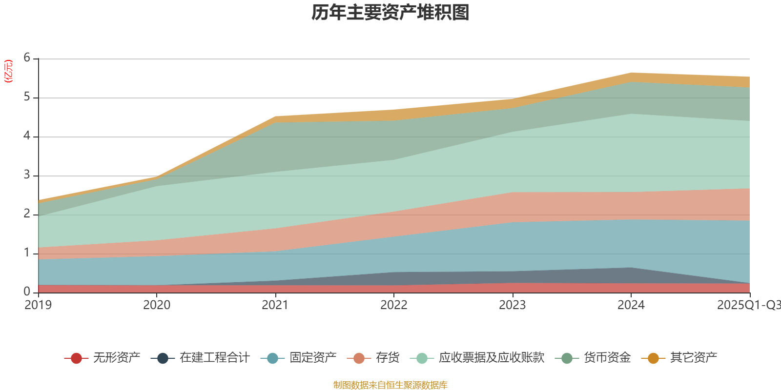 资产重大变化方面,截至2025年三季度末,公司固定资产较上年末增加30.19%,占公司总资产比重上升7.15个百分点;在建工程合计较上年末减少96.94%,占公司总资产比重下降7个百分点;应收票据及应收账款较上年末减少13.74%,占公司总资产比重下降4.28个百分点;存货较上年末增加17.28%,占公司总资产比重上升2.44个百分点。