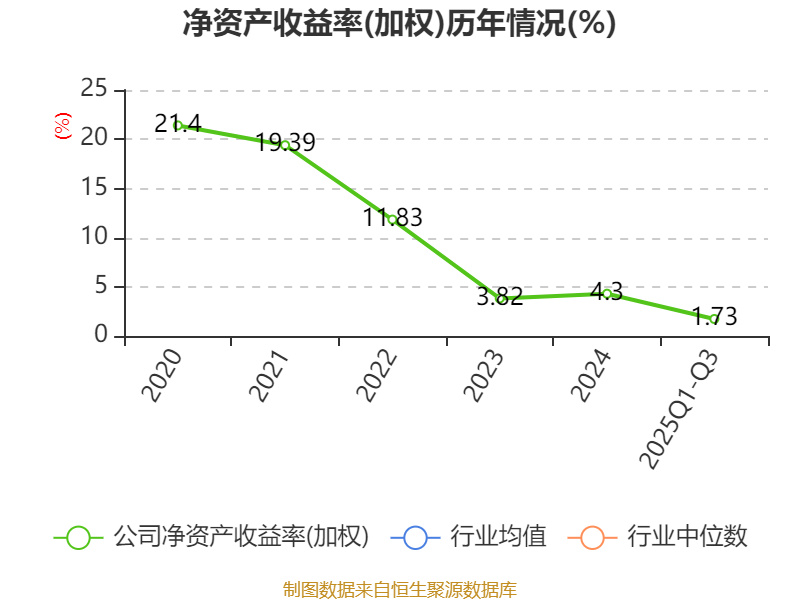 盈利能力方面, 2025年前三季度公司加权平均净资产收益率为1.73%,同比下降1.79个百分点。公司2025年前三季度投入资本回报率为1.48%,较上年同期下降1.68个百分点。