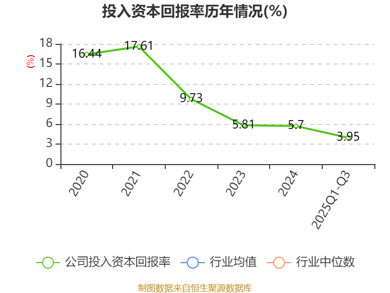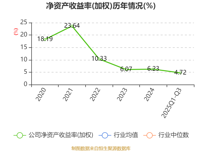 盈利能力方面, 2025年前三季度公司加权平均净资产收益率为4.72%,同比下降1.28个百分点。公司2025年前三季度投入资本回报率为3.95%,较上年同期下降1.39个百分点。