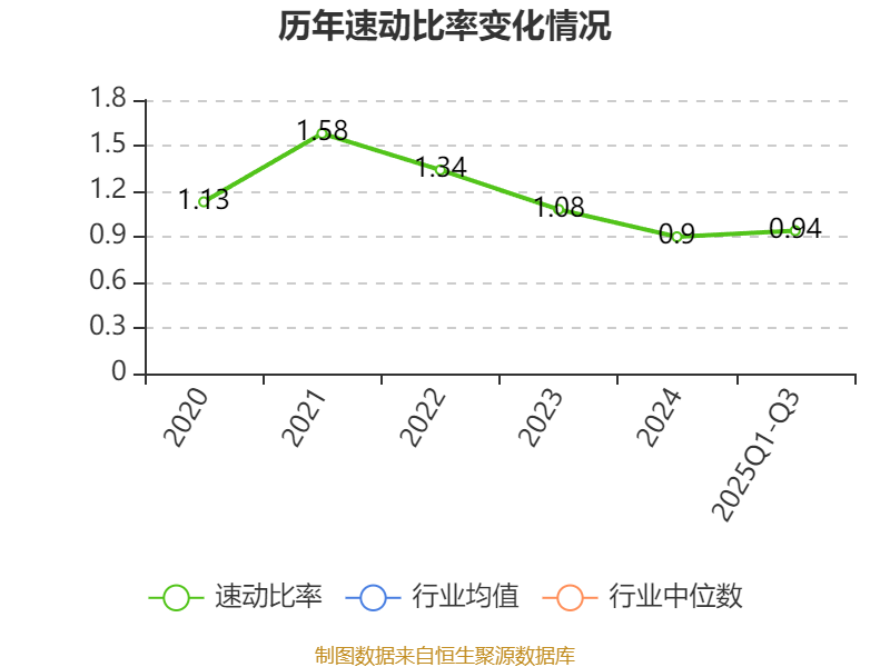 2025年前三季度,公司流动比率为1.39,速动比率为0.94。