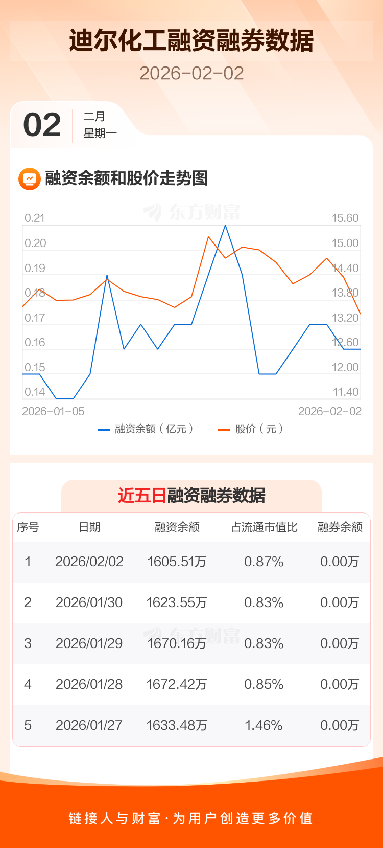 迪尔化工:融资净偿还18.04万元,融资余额1605.51万元