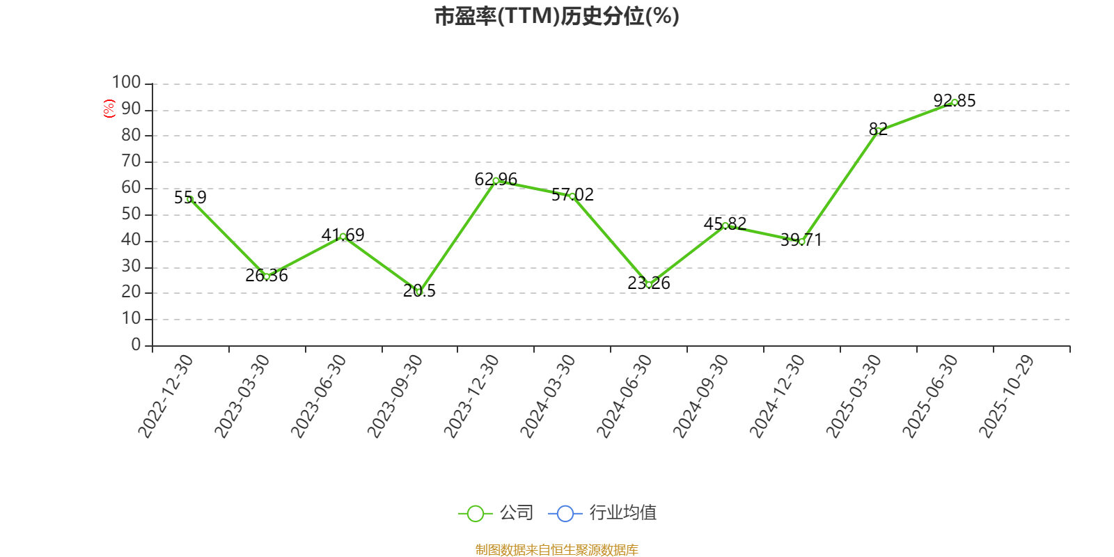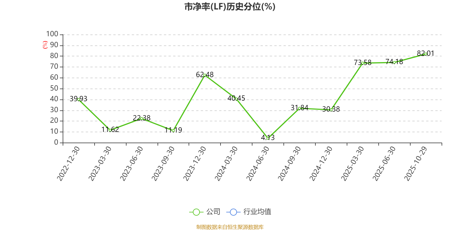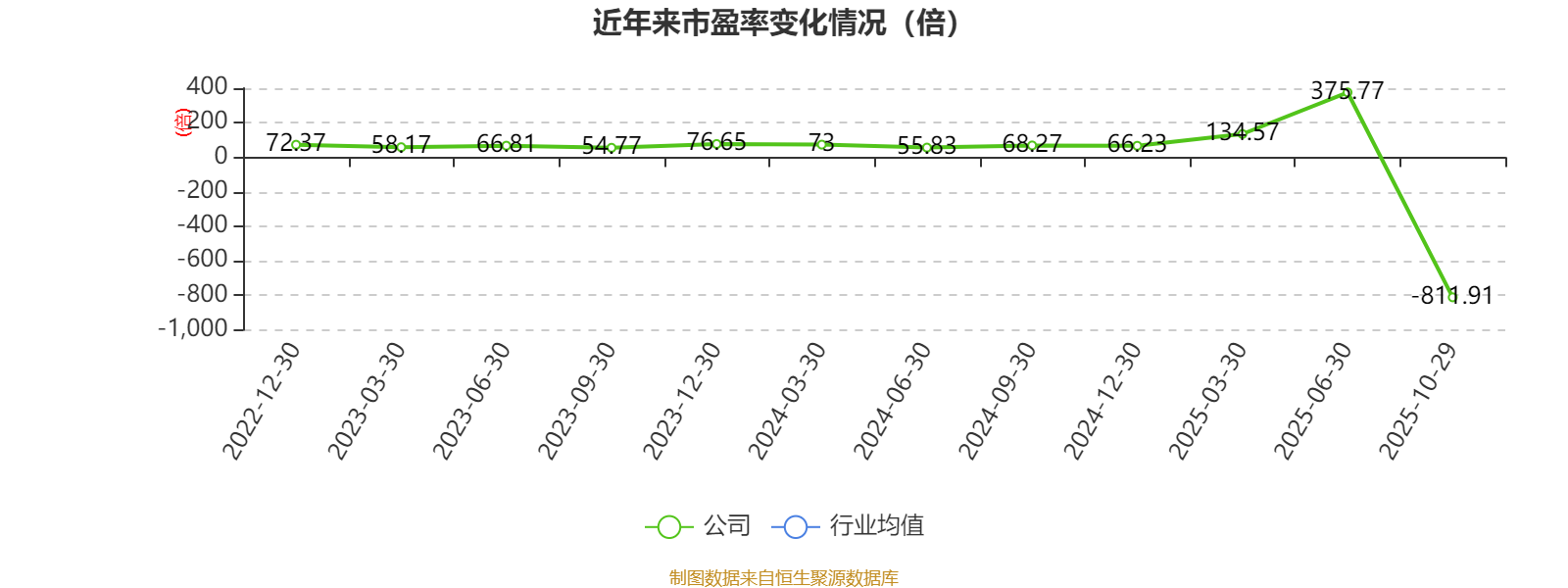 市盈率、市净率为负时,不显示当期分位数,会导致折线图中断。