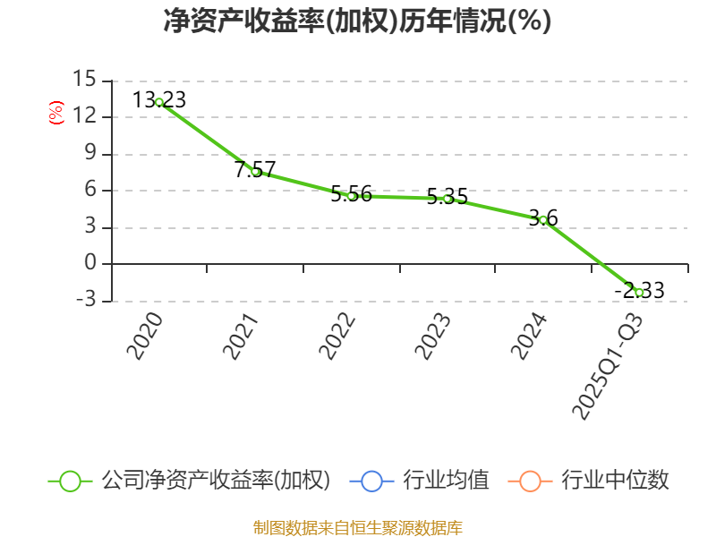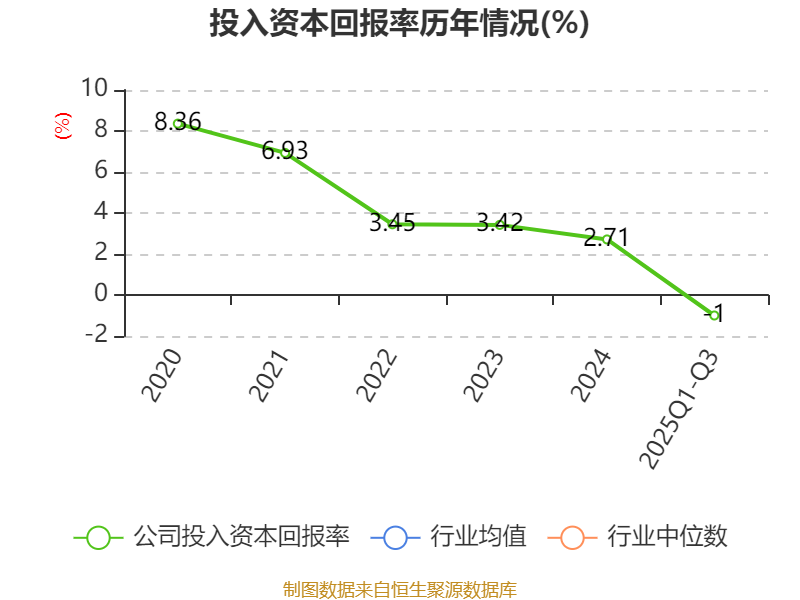 盈利能力方面, 2025年前三季度公司加权平均净资产收益率为-2.33%,同比下降4.26个百分点。公司2025年前三季度投入资本回报率为-1%,较上年同期下降2.67个百分点。
