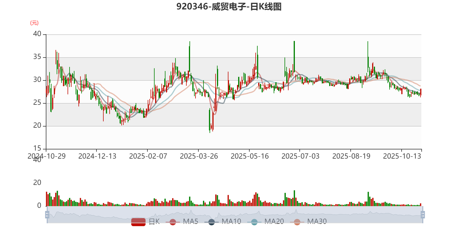 中证智能财讯威贸电子(920346)10月29日披露2025年第三季度报告。前三季度公司实现营业总收入2.05亿元,同比增长8.95%;归母净利润3382.86万元,同比增长10.55%;扣非净利润3133.77万元,同比增长15.63%;经营活动产生的现金流量净额为4455.77万元,同比增长13.23%;报告期内,威贸电子基本每股收益为0.42元,加权平均净资产收益率为7.48%。