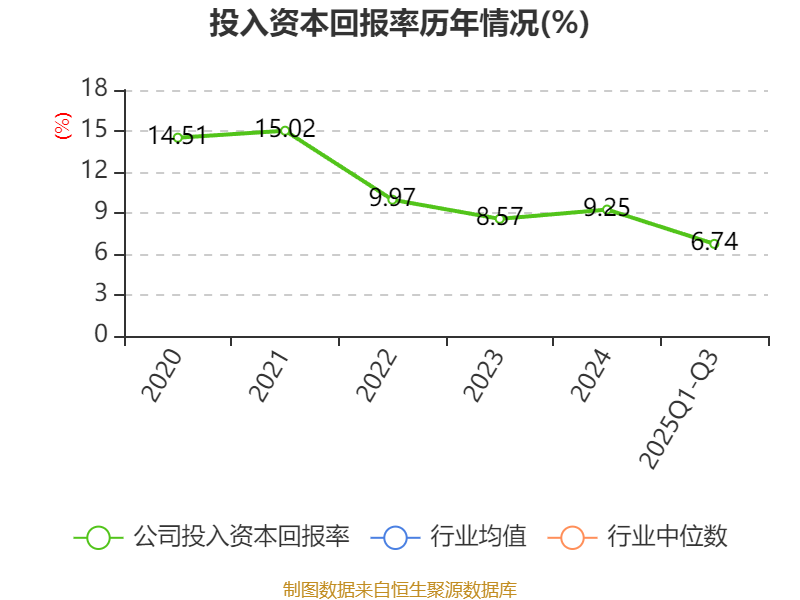 盈利能力方面, 2025年前三季度公司加权平均净资产收益率为7.48%,同比上升0.4个百分点。公司2025年前三季度投入资本回报率为6.74%,较上年同期上升0.3个百分点。