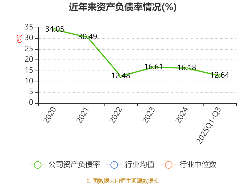 2025年前三季度,公司流动比率为6.17,速动比率为5.62。