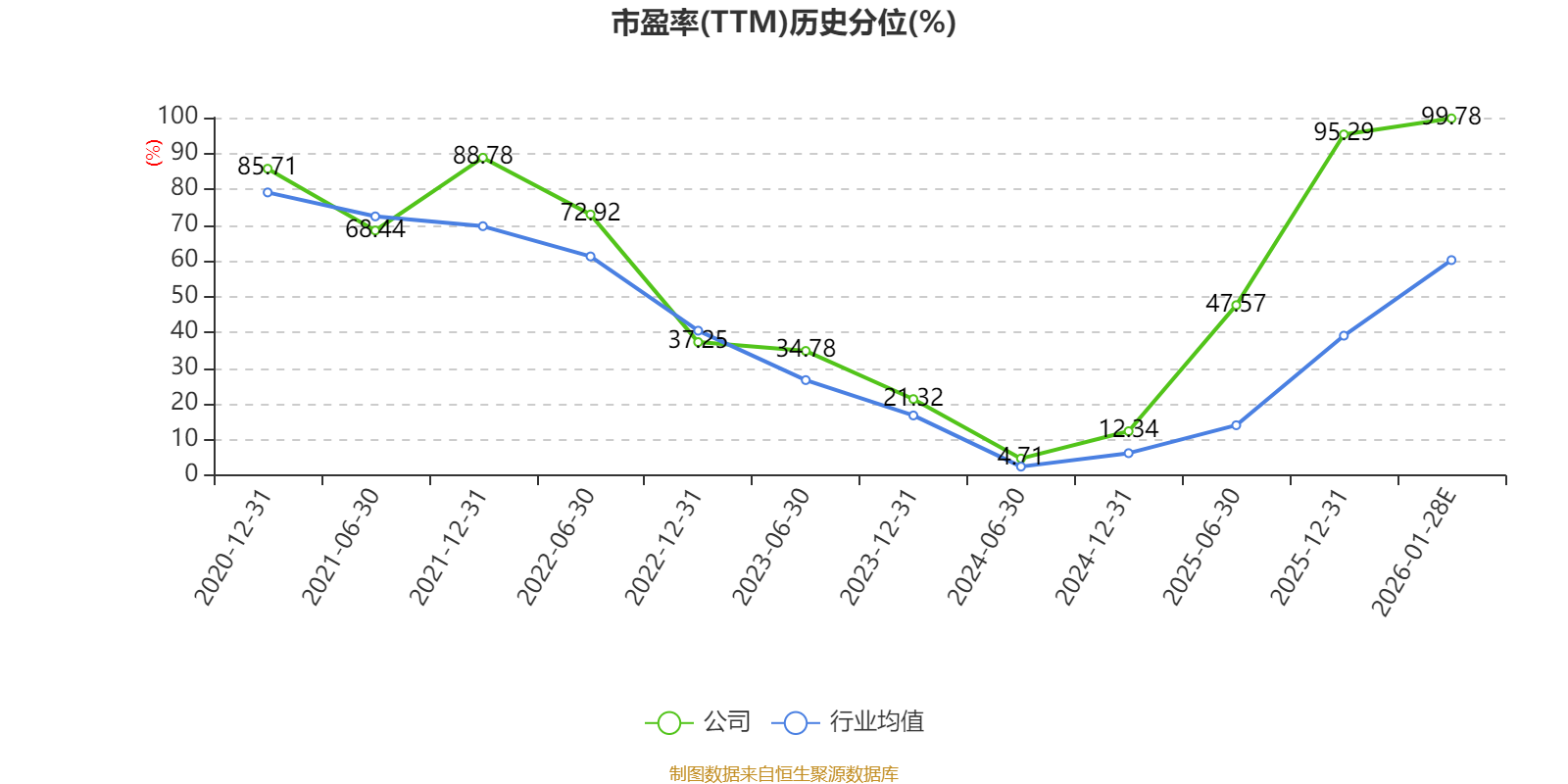 市盈率、市净率为负时,不显示当期分位数,会导致折线图中断。