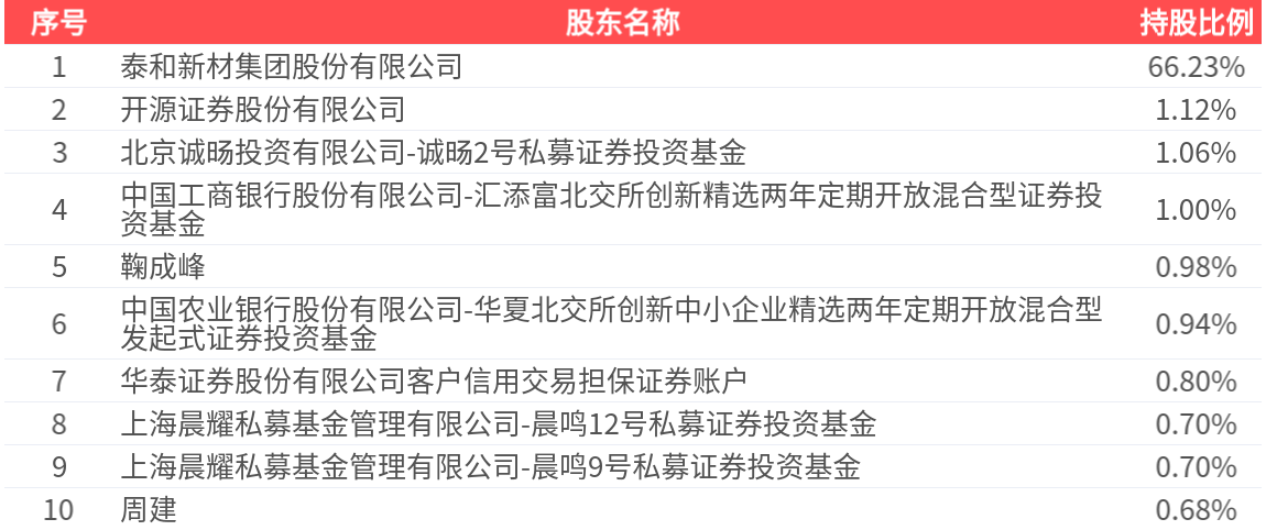 公司股东户数为5736户,前十大股东持股数量为1.09亿股,占总股本比例为74.22%,前十大股东持股情况如下: