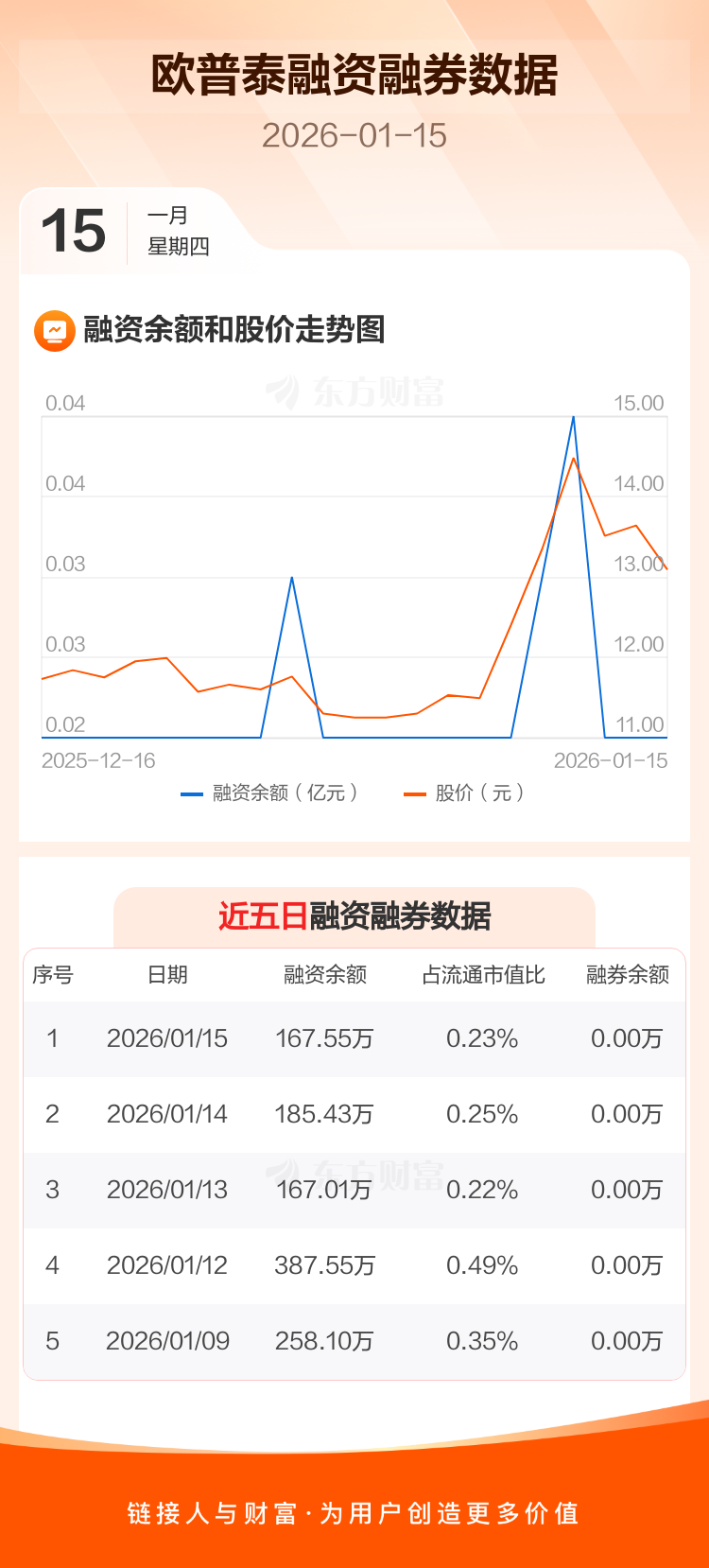 交易所最新数据显示,欧普泰于2026年1月15日获融资买入33.84万元,融资偿还51.72万元,当日融资净偿还17.87万元。目前,该股融资余额167.55万,占流通市值比例为0.23%。