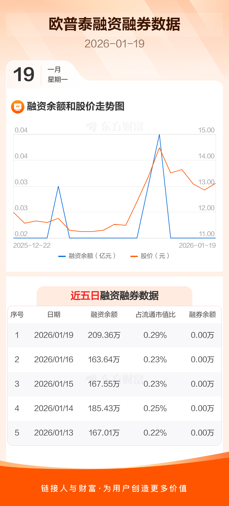 交易所最新数据显示,欧普泰于2026年1月19日获融资买入52.88万元,融资偿还7.15万元,当日融资净买入45.73万元。目前,该股融资余额209.36万,占流通市值比例为0.29%。