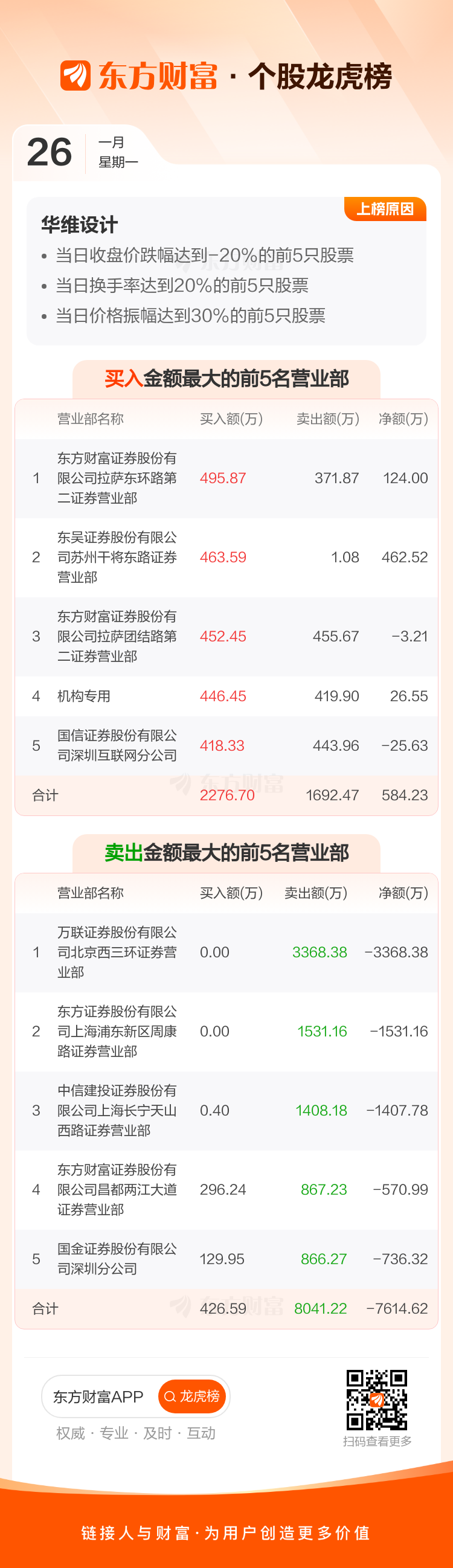 华维设计(920427)龙虎榜数据(01-26)