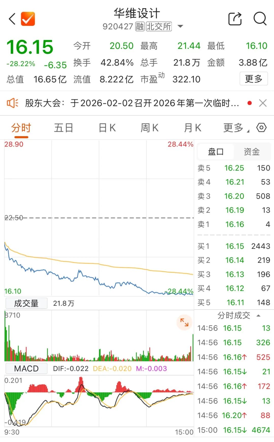 1月26日,华维设计开盘跌超8%,截至收盘,该股票跌幅达28.22%。