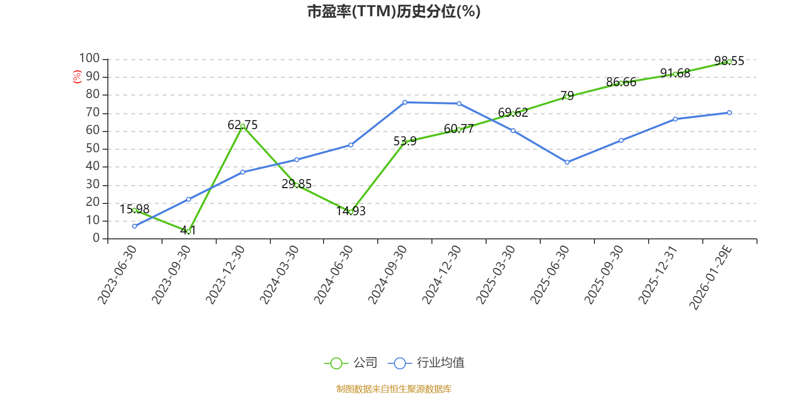 市盈率、市净率为负时,不显示当期分位数,会导致折线图中断。