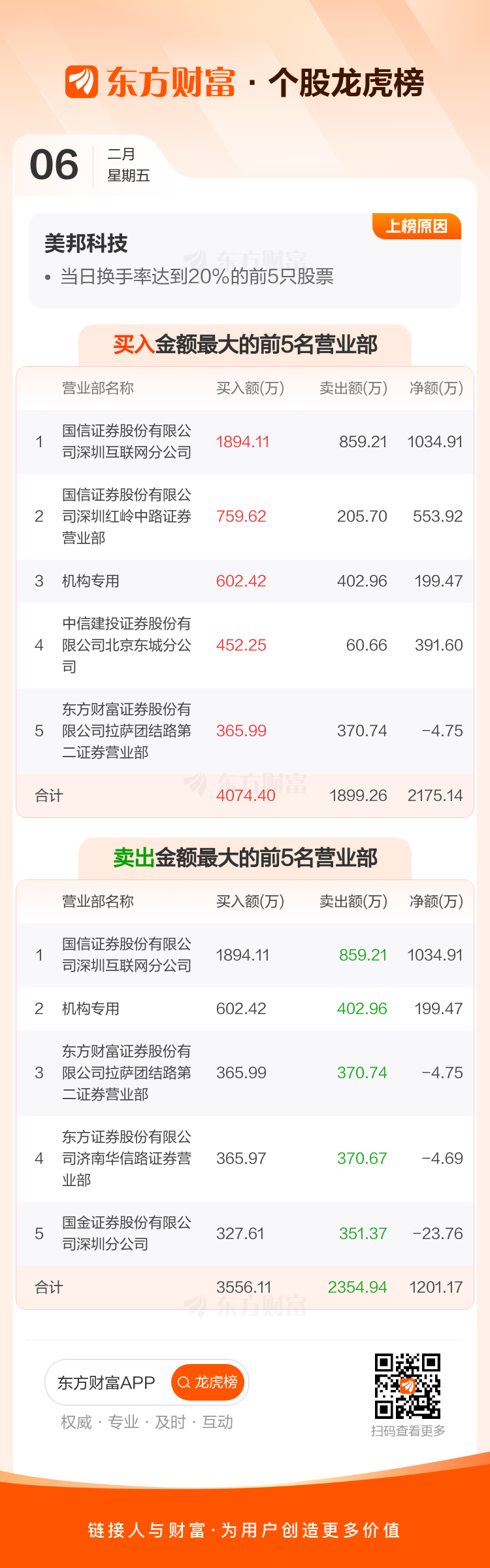 美邦科技(920471)龙虎榜数据(02-06)